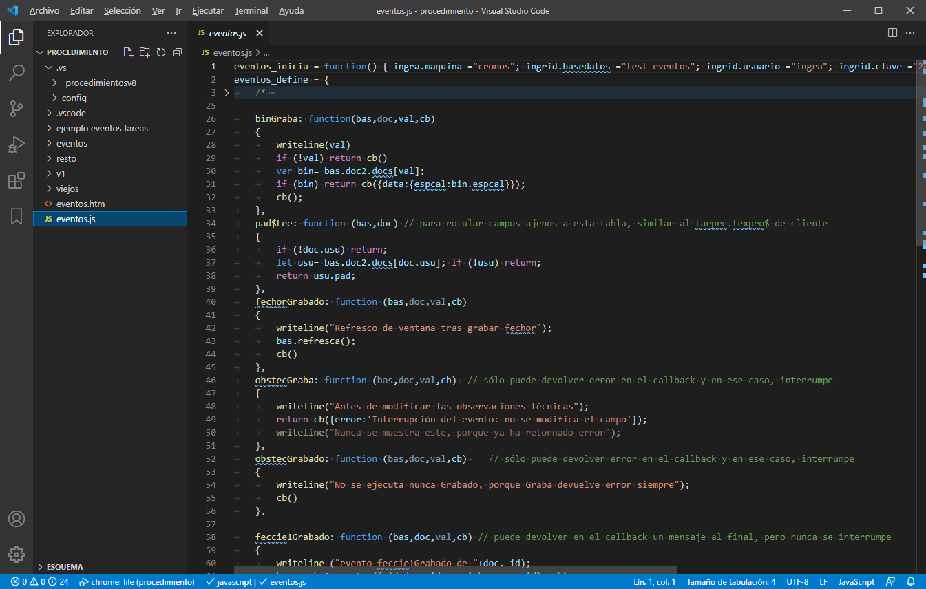 El código que se ejecuta en las 3 funciones, se encuentra en el archivo codigo_eventos.js