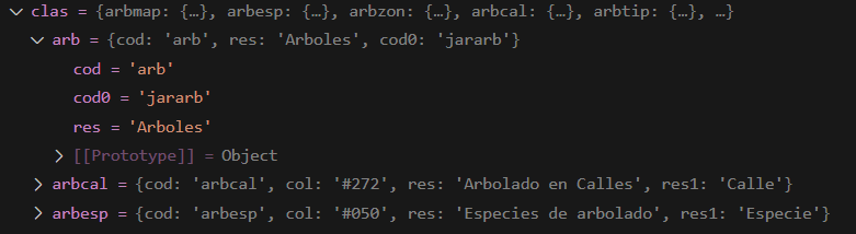 Función calculaArbolado(): Función específica de Sanse Verde que nos sirve para calcular cuántos árboles hay en cada zona, calle, etc. En el caso de sanse-verde el orden es: