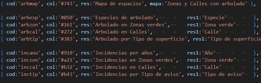 5. Una vez tenemos todos los conceptos se puede filtrar aquellos que tengan relevancia para la página web. Para el caso de Sanse Verde, mediante la función calculaArbolado() filtraremos familias, zonas y calles que tengan árboles y saber cuántos árboles tiene cada uno.