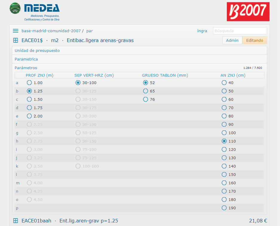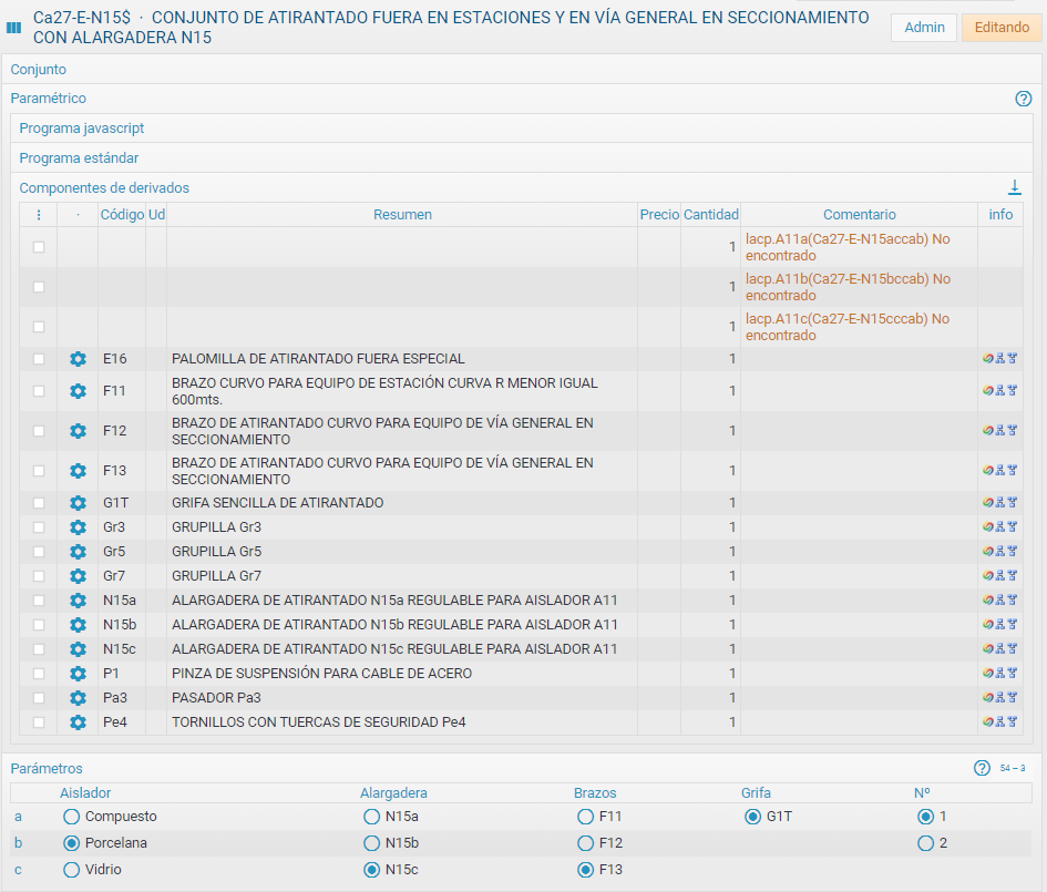 Una vez se tiene un cuadro de precios en una base Ingrid, desde un archivo BC3, la conversión a paramétricos javascript se realiza automáticamente y con cientos de paramétricos en segundos, incluyendo además el cálculo completo de derivados, lo que permite encontrar errores de inexistencias en las descomposiciones.