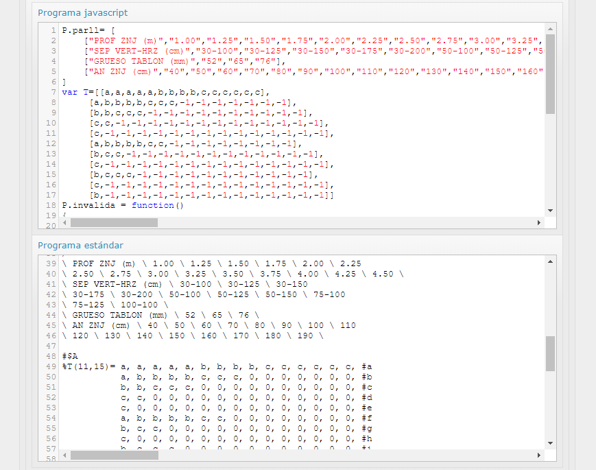 El programa de cada familia paramétrica calcula en tiempo real las combinaciones de opciones inválidas por no ser compatibles, y las anula para que no puedan seleccionarse. En el ejemplo, PROFUNDIDAD a partir de la opción f, por ejemplo. Al seleccionar cualquier otro valor válido, se desactivarán las opciones que corresponda en cada momento.