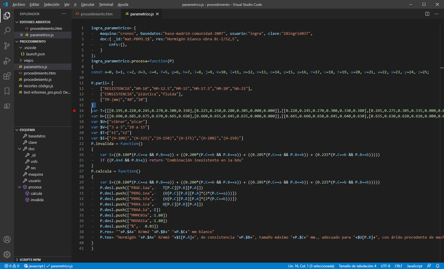 La ventaja de la definición de paramétricos en Javascript, es que con conexión a Ingrid, se pueden depurar en un entorno de desarrollo estándar como Visual Studio Code, con todas sus herramientas de uso libre de traza, ayuda a la escritura de código, biblioteca de extensiones, terminal integrado, etc.: