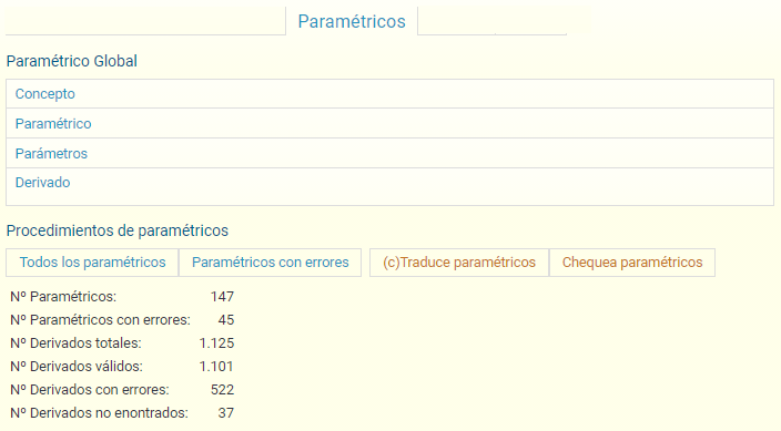Ese menú también tiene herramientas para el desarrollo como el chequeo masivo de paramétricos, la traducción de paramétricos estándar a Javascript, la búsqueda de los conceptos con info paramétrica y en caso de haber errores en la base, mostrar los que tienen errores: