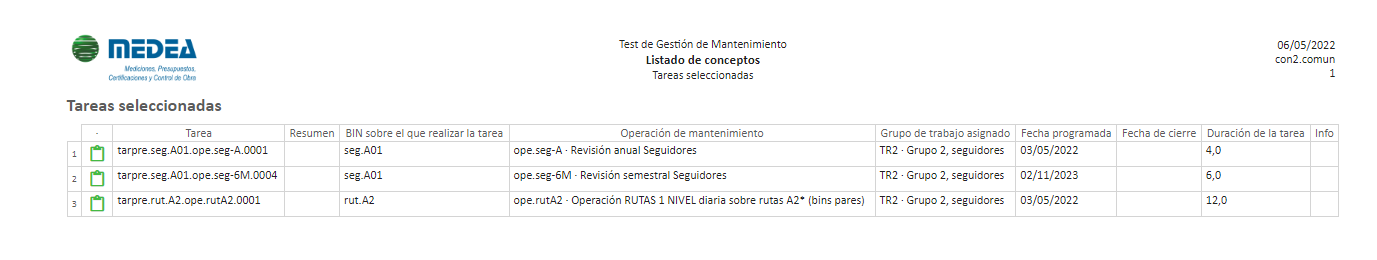 - Desde Tareas (preventivas y correctivas) y Grupos de trabajo, tareas y órdenes del Grupo de trabajo del actual.