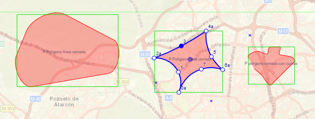- el Tipo de entidad geográfica. El cambio de tipo no conlleva pérdida de información, es decir, si tenemos un polígono cerrado y lo cambiamos a abierto, siempre podemos volver atrás porque no falta ningún punto, incluso convirtiendo un polígono cerrado en un geo puntual, se guardan los demás puntos, por si se deshace el cambio.