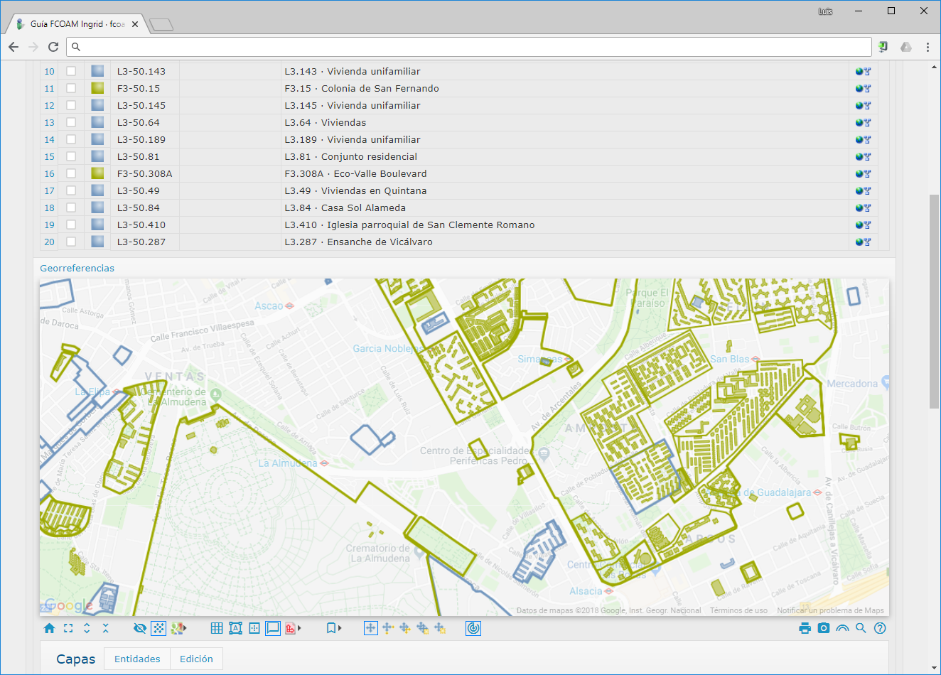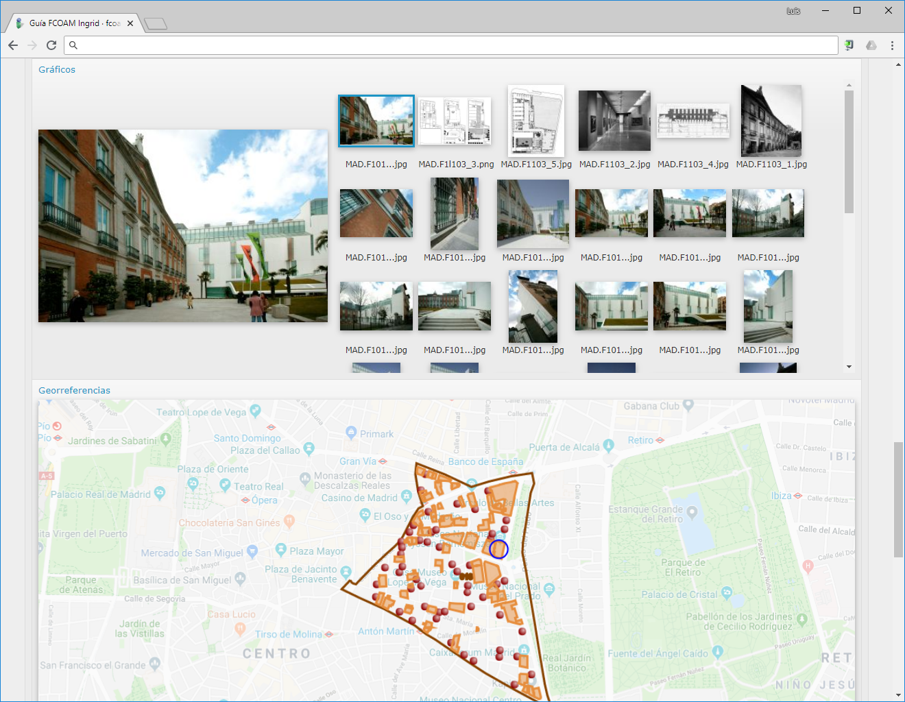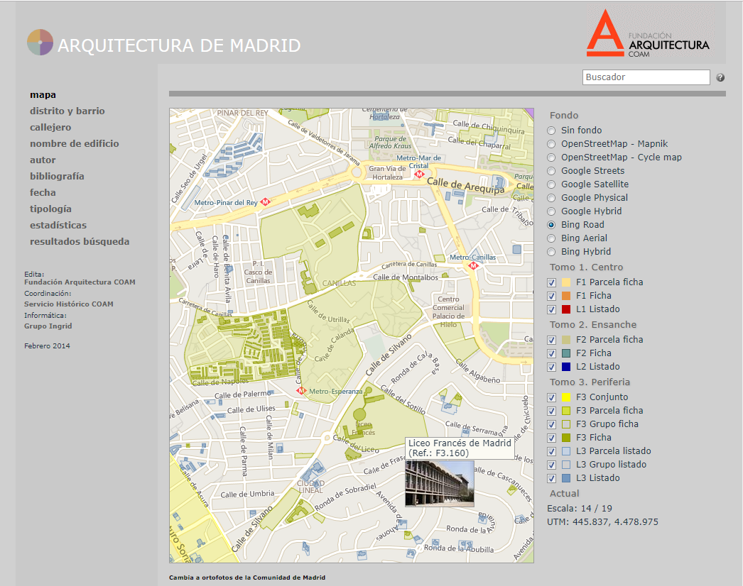 Guía de Arquitectura del COAM, cuya actualización está próxima desde Ingrid 9, con todo el contenido público de más de 4.700 inmuebles y parcelas