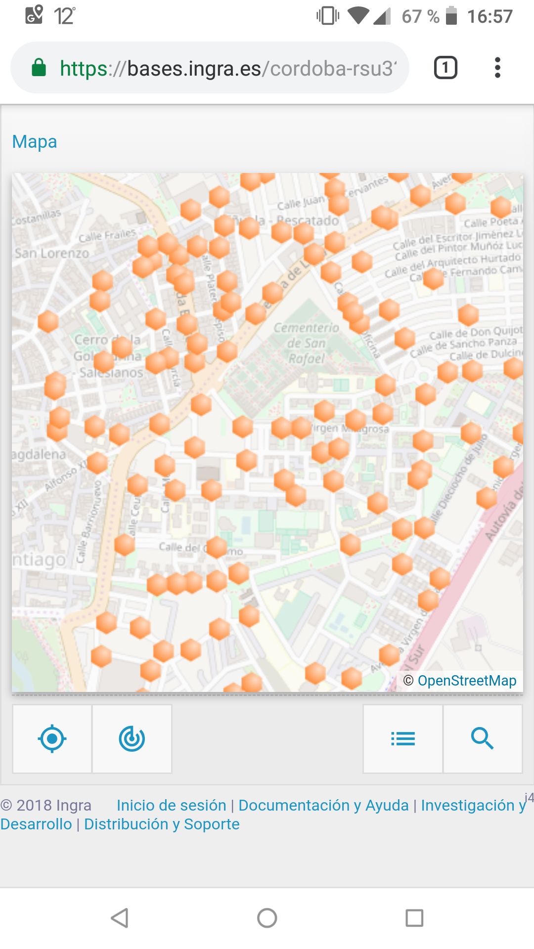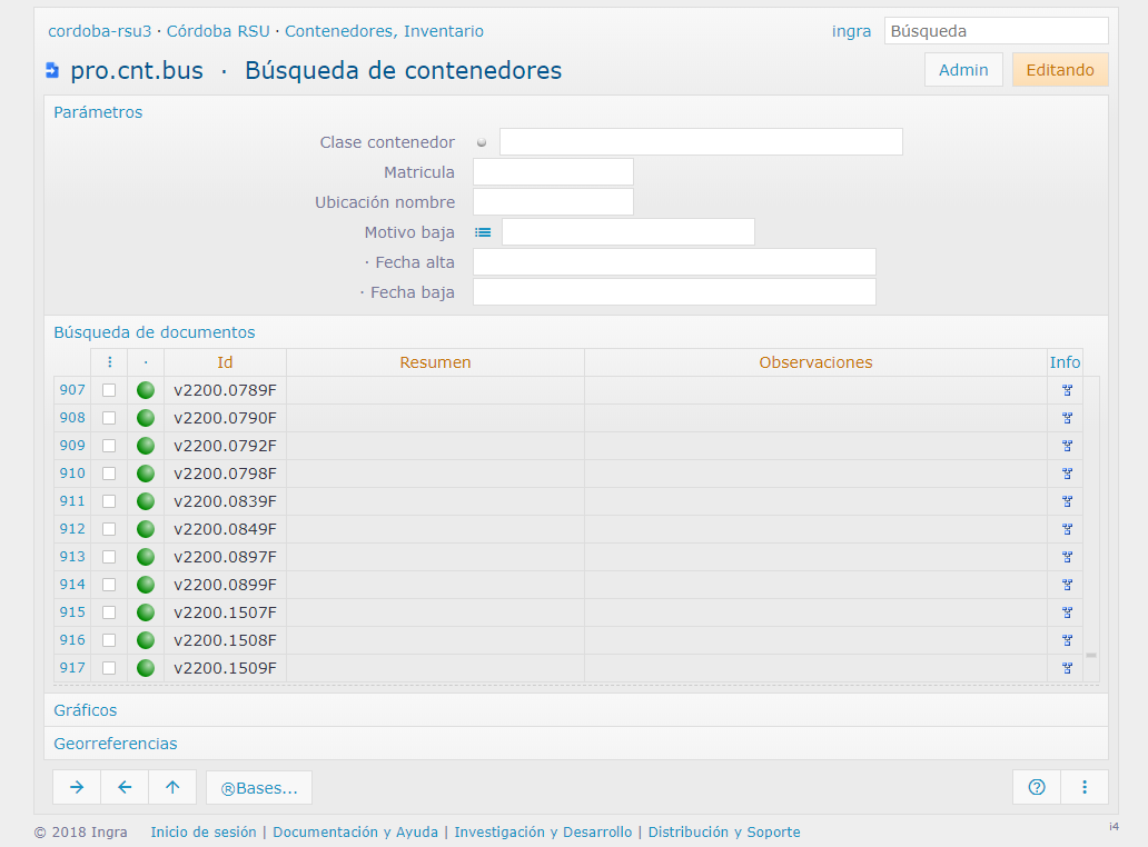 Inventario de contenedores por distrito. Esta salida, además de ser interactiva en la propia ventana de Ingrid, se puede volcar a un archivo HTML externo completamente independiente con la misma información interactiva. Muy útil para enviárselo a alguien o archivarlo.